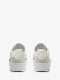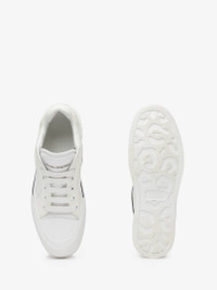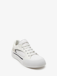White and black canvas, nappa leather and suede lace-up Deck Plimsoll with an exploded Seal Logo on the heel counter and a thick oversized rubber sole. The lace-up is detailed with a rubber wrap sole and tonal Alexander McQueen signature. Product Details: • Round toe with rubber toe cap • Lace-up closure • Alexander McQueen signature • Oversized rubber sole • Additional pair of shoelaces included Material:100% Nylon Product Code:777241W4SS39061