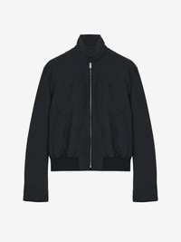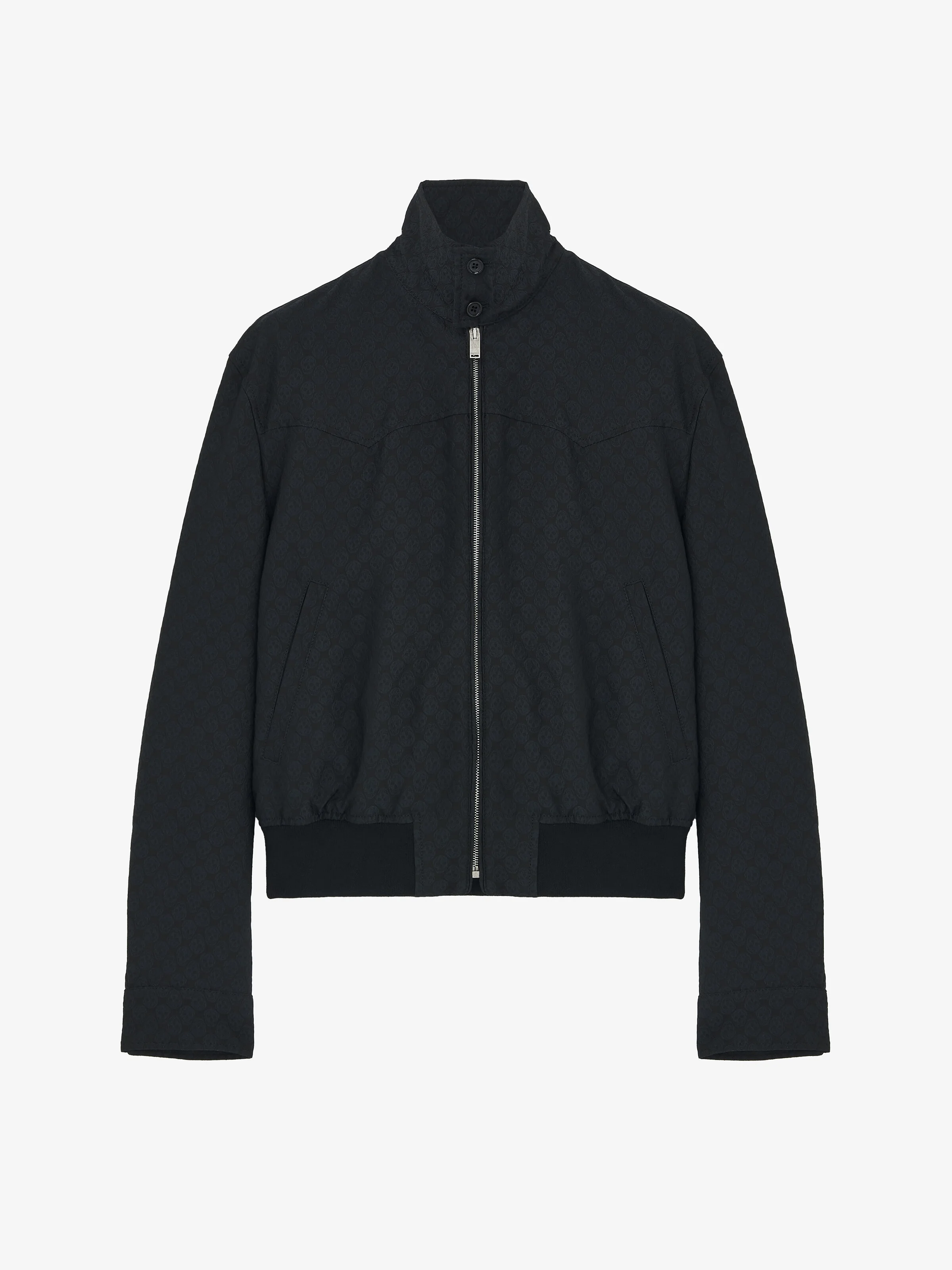 Cropped Harrington jacket in black Skull jacquard. Side pockets and tonal ribbed trims. Finished with a two-button collar and front zip fastening. Product details - Two-button collar - Side pockets - Front zip fastening - Contains certified viscose yarn - Product code: 827425QRABU1010 - Made in ITALY - Material: 78% Viscose, 22% Polyester