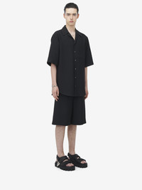 Shirt in black Skull jacquard. Camp collar and chest pocket. Finished with a curved hem and front button fastening. Complete the look with the matching shirt. Product details - Camp collar - Chest pocket - Front button fastening - Contains certified viscose yarn - Product code: 814693QRABU1010 - Made in Romania - Material: Viscose, Polyester