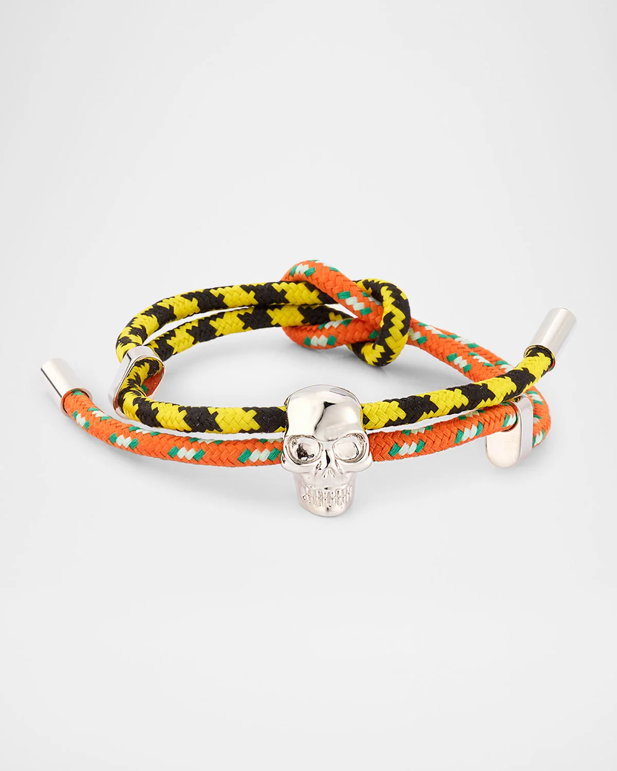 - McQueen bracelet defined by woven multicolor cords - Silvertone brass - Signature skull charm - Pull closure - Adjustable fit - Spot clean - Made in Italy