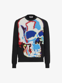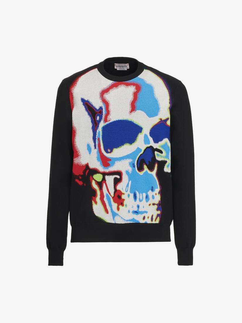 Men's Solarised Skull Jacquard Jumper in Black/multicolor