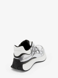 Presented in white and black mesh and leather, this Sprint Runner has been updated with a modern sporty aesthetic and silver metallic detailling. The sneaker is finished with an appliqué Seal Logo on the side and an Alexander McQueen signature on the heel counter. Product Details: • Lace-up closure • Round toe • Padded heel counter and tongue • Seal Logo • Oversized light runner sole • Additional pair of shoelaces included • To lessen our environmental impact and to reduce cotton consumption, we will no longer be providing a dust bag with our sneakers. Material:74% Nylon, 26% Elastan Product Code:757985W4WM68718