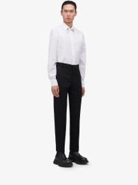 Tailored cigarette trousers in black wool barathea. The trousers feature two side pockets and two jetted pockets on the back. Finished with a concealed zip and hook fastening. For the full look, wear with the matching jacket. Product details - Belt loops - Side pockets - Concealed zip and hook fastening - True to size - Made with certified wool yarn - Product code: 735205QVAAA1000 - Made in Italy - Material: 100% Wool