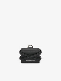 Black calf leather AirPods Pro case featuring harness detailing and a detachable leather strap. Finished with an Alexander McQueen signature at the base. Material:100% Calf leather Product Code:7263291AAD01000