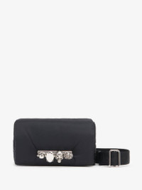 Black puffy nylon belt bag featuring the signature Knuckle metal handle. The bag can be worn in multiple ways: across the body, around the hip or hand-held by removing the strap. Product details - Dimensions: Lenght 24 x Height 14 x Depth 6.5cm / 9.4 x 5.5 x 2.5 inches - Magnetic fastening - One main compartment - Internal flat pocket and card slot - Internal lining in leather - Adjustable and detachable Alexander McQueen Jacquard cotton webbing and leather strap - Eco brass hardware with an antique silver finishing - Due to the appearance of the product, we recommend stowing it in your hold luggage when passing through airport security. For the same reason we recommend not taking the bag to public places, such as law courts and sports stadiums, where there may be security checks. - Product code: 7750461AAQ31000 - Made in Italy - Material: Nylon