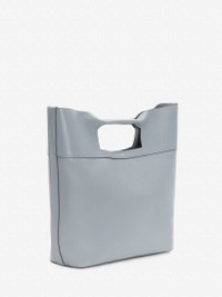 The Small Square Bow in dove grey smooth calf leather, featuring a cut-out bow section . This bag can be worn either hand-held or over the shoulder with its detachable black and white webbing strap. Finished with a silver-tone Alexander McQueen signature. Product Details: • Dimensions: 39 x 44 x 15cm / 15.3 x 17.3 x 6 inches • Strap drop: 42cm / 16.5 inches • Twisted top handle • Magnetic closure • One main compartment • Suede lining • Removable zip pouch with an external credit card slot • Detachable and adjustable shoulder strap Material:100% Calf Leather Product Code:7352851AAJL1537