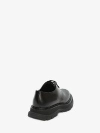 Black calf leather lace-up with a thick oversized rubber tread sole and a rounded toe silhouette. Finished with an Alexander McQueen signature on the tongue. Material:100% Calfskin Product Code:604255WHZ801000