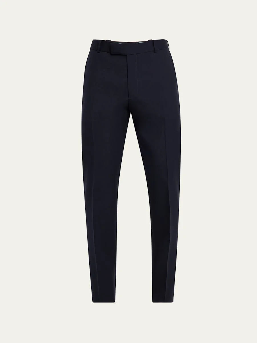 McQueen cigarette trousers in solid wool Low-rise Side slip pockets Back welt pockets with button closure Slim fit Full length Extended hook/zip fly; belt loops Wool Dry clean Made in Italy Online Inquiries: BGS21_NCZKA| Store Inquiries: #4983698