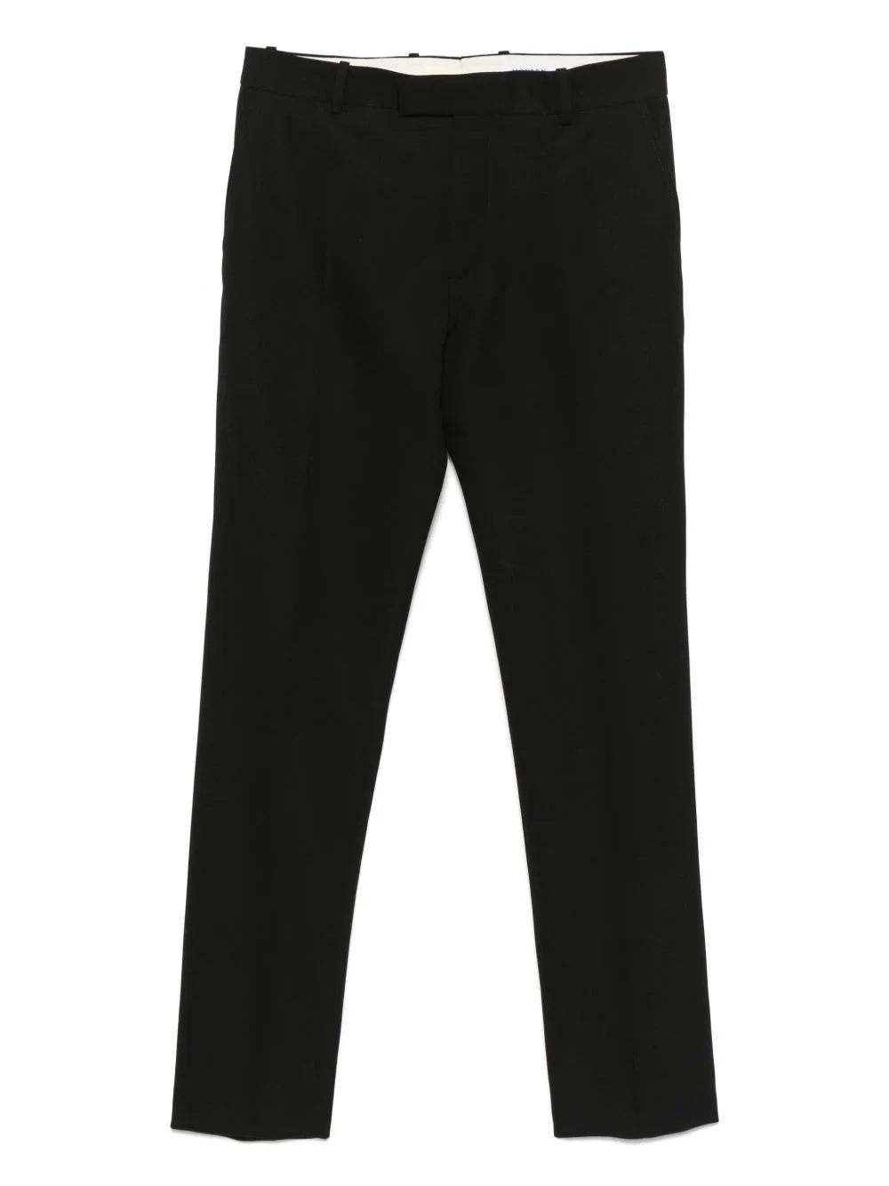 low-rise tailored trousers Highlights - Black - Concealed front button, hook and zip fastening - Two diagonal pockets to the sides - Two rear button-fastening jetted pockets - Belt loops Made in Italy Composition Lining: Cupro 100%, Cotton 100% Outer: Wool 100% SIZE & FIT Model measurements Height 6 ft 2 in(1.87 m) Bust/Chest 38.97 in(99 cm) Hips 37.99 in(96.5 cm) Waist 29.52 in(75 cm) FittingInformation Designed for a slim fit, offering a comfortable fit that sits just away from the leg Made from a midweight non-stretch fabric