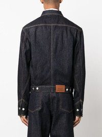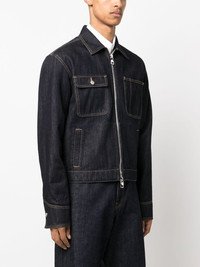 Jacket in indigo denim featuring a point collar and mismatched chest pockets. The jacket is finished with a two-way zip fastening and tobacco topstitching. Product Details: • Point collar • Mismatched pockets • Zip fastening Material:100% Cotton Product Code:759115QVY104142