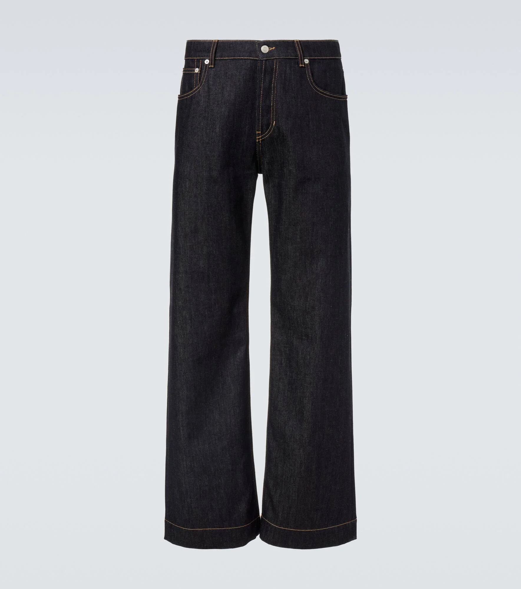 Fill your edit with versatile designs like these McQueen jeans. Crafted from pure cotton denim, this pair comes with a mid-rise waist, a classic 5-pocket design, and a wide-leg silhouette. Product Details - Material: 100% cotton - Care instructions: machine wash at 30 degrees - Made in Italy - Designer color name: Indigo - Item color: blue - Pocket lining: 65% polyester, 35% cotton - Pockets: five pockets - Closure: buttoned front - Belt loops - Item number: P01076854 Size & Fit - True to size - Non-stretchy fabric - Wide-leg - Mid-rise - The model in the picture is 185cm-6'1" and wearing a size 50