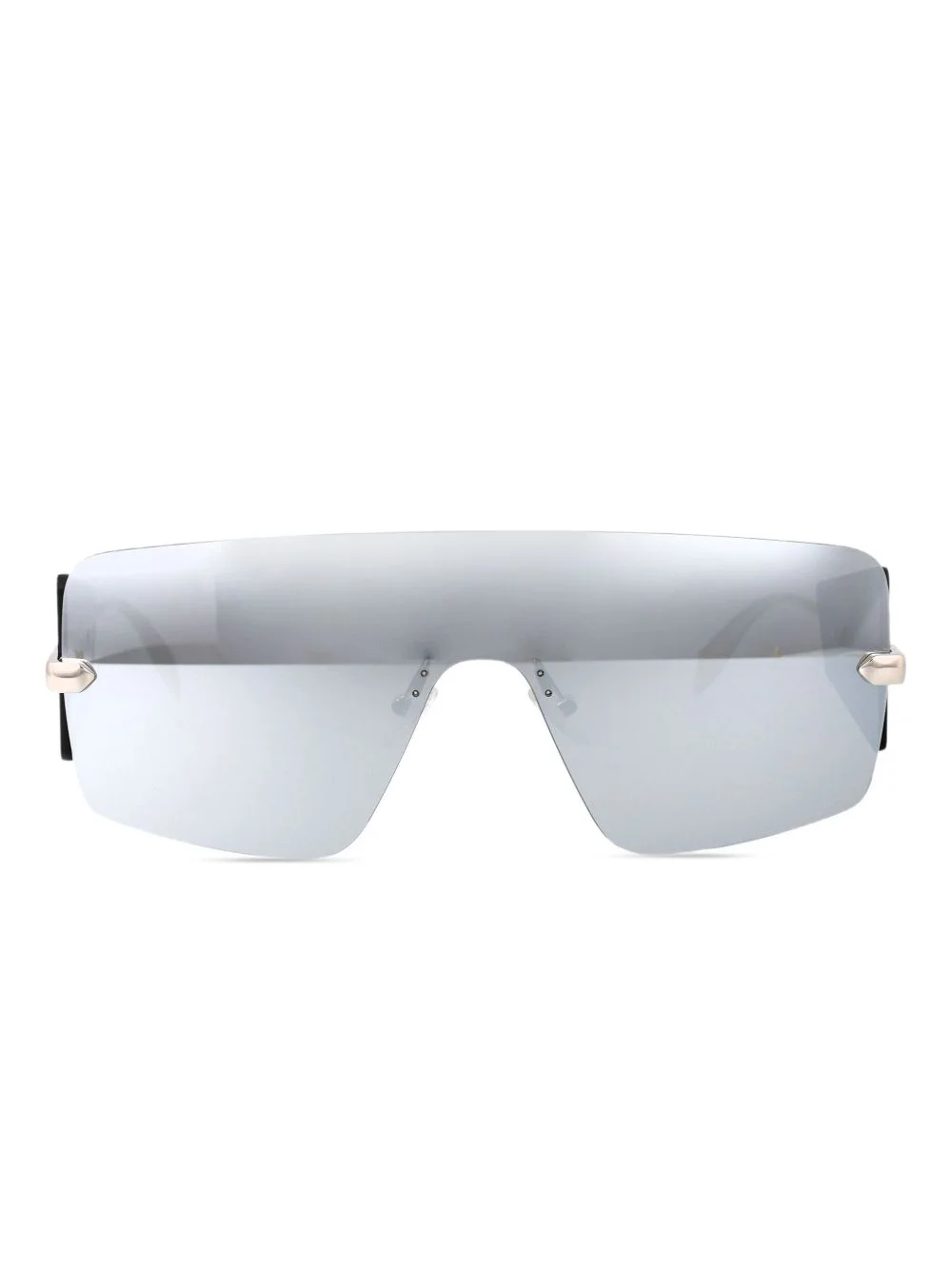 mirrored shield-frame sunglasses Highlights - Silver-tone - Acetate - Shield frame - Mirrored lenses - Nose pads - Logo-engraved arm - Sculpted arms - Curved tips - These glasses come with a protective case. Made in Italy Composition Acetate 100% SIZE & FIT Measurement Arm Length 5.7 in(14.5 cm) Bridge Width 0.39 in(1 cm) Lens Diameter 3.89 in(9.9 cm) Total Width 5.82 in(14.8 cm)