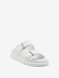 New ivory rubber slide featuring signature Alexander McQueen in high relief, silver hardware and an oversized rubber sole. The slide features a round toe silhouette with a metal hardware bar slide and engraved with signature Alexander McQueen. Product details - The style fits true to size - Product code: 663563W4Z519359 - Made in Italy - Material: 100% Rubber