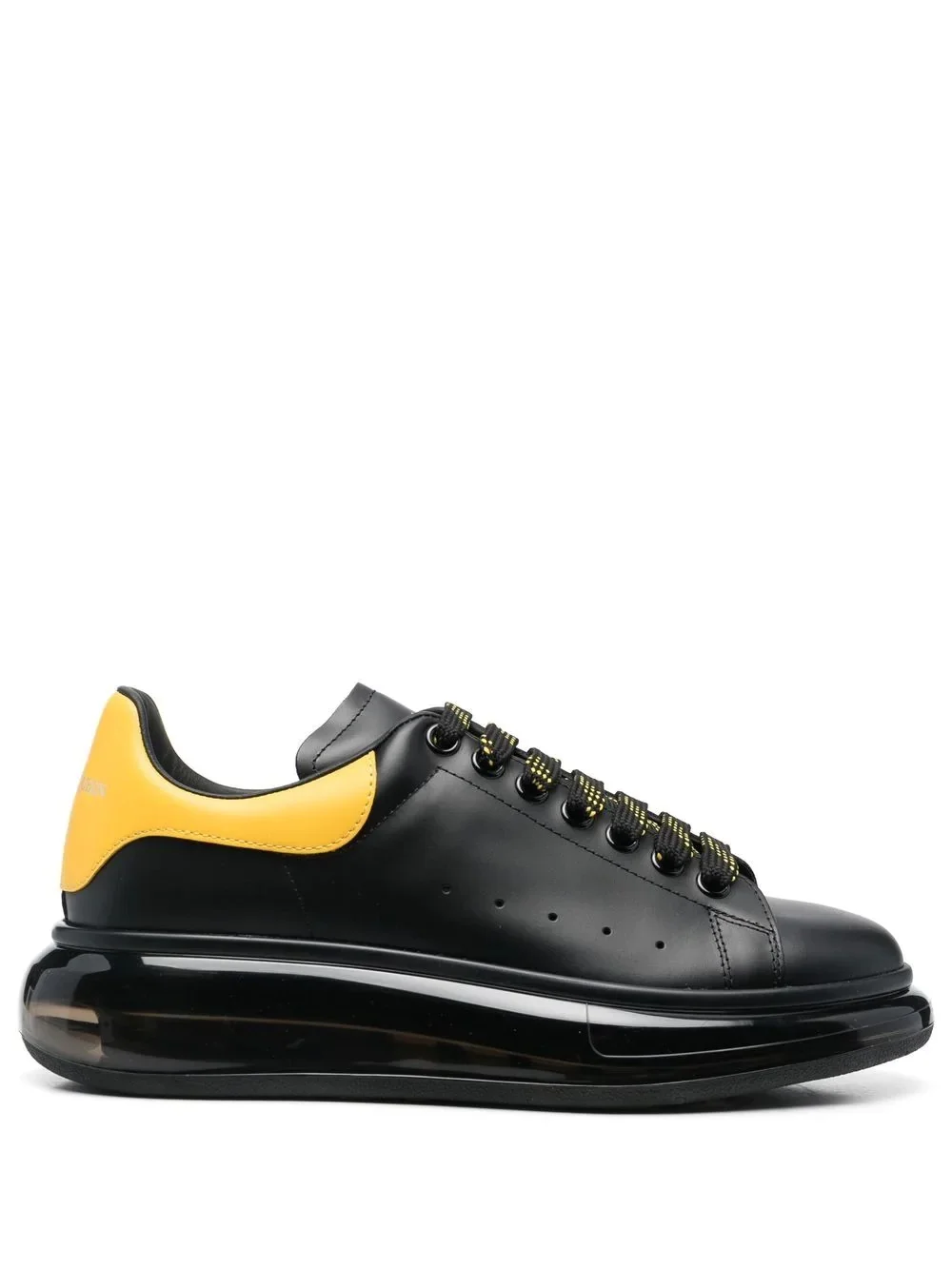 Oversized-sole sneakers Oversized-sole sneakers from Alexander McQueen featuring black, yellow, calf leather, chunky rubber sole, contrasting branded heel counter, front lace-up fastening and round toe. Made in Italy Composition Lining: Calf Leather 100% Sole: Rubber 100% Outer: Calf Leather 100% SIZE & FIT Measurement HEEL 2.36 in(6 cm) Sole height 1.18 in(3 cm)