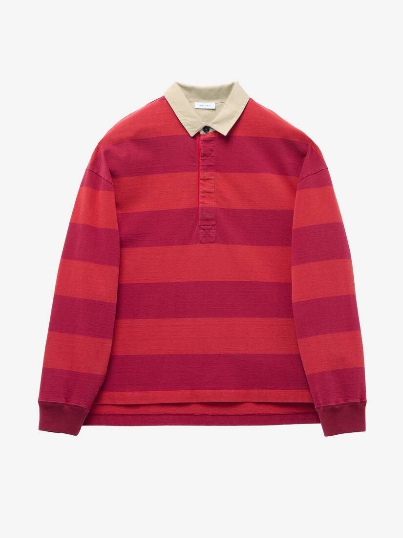 Oversized polo shirt. Bordeaux and bright red washed rugby stripe jersey. Contrasting point collar with concealed button fastening. Finished with inverted skull detailing on the back. Product details - Point collar - Inverted skull detailing - Product code: 809764QXABW6168 - Made in Italy - Material: Cotton