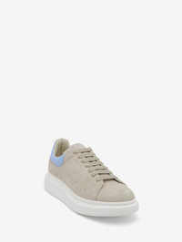 The Oversized Sneaker – statement silhouette in natural beige brushed suede with a sky blue leather heel counter. Finished with a chunky rubber sole. Product details - Round toe - McQueen signature - Contrasting heel counter - Oversized rubber sole - Additional pair of shoelaces included - Product code: 553680WIAJ91634 - Made in ITALY - Material: Calf Leather