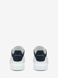 The Oversized Sneaker – statement silhouette in white calf leather, with a blue grey suede heel counter featuring the McQueen signature. Finished with a chunky rubber sole. Product details - Round toe - McQueen signature - Contrasting heel counter - Oversized rubber sole - Additional pair of shoelaces included - Product code: 553680WIAI39054 - Made in ITALY - Material: Calf Leather