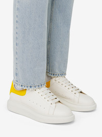 The Oversized Sneaker - Statement silhouette in off white and yellow calf leather, with heel counter printed with the McQueen logo. Finished with a chunky rubber sole. Product details - Round toe - Alexander McQueen logo - Contrasting heel counter - Oversized rubber sole - Additional pair of shoelaces included - Product code: 553680WIAEE9675 - Made in Italy - Material: Calf Leather