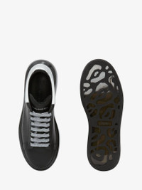 Black smooth calf leather lace-up sneaker featuring a transparent oversized sole and a reflective heel detail. The sneaker features large flat laces and is finished with an Alexander McQueen signature on tongue and heel counter. Oversized rubber sole with signature stamp design. The sneakers come with an additional set of shoelaces. To lessen our environmental impact and to reduce cotton consumption, we will no longer be providing a dust bag with our sneakers. Material: 100% Calf Leather