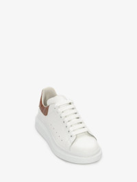 White smooth calfskin leather lace-up sneaker trimmed with a cedar brown embossed croco heel counter. The sneaker features large flat laces and an oversized rubber sole. Finished with an Alexander McQueen signature on the tongue and heel counter. Oversized rubber sole with signature stamp design. The sneakers come with an additional set of shoelaces. Material: 100% Calf Leather