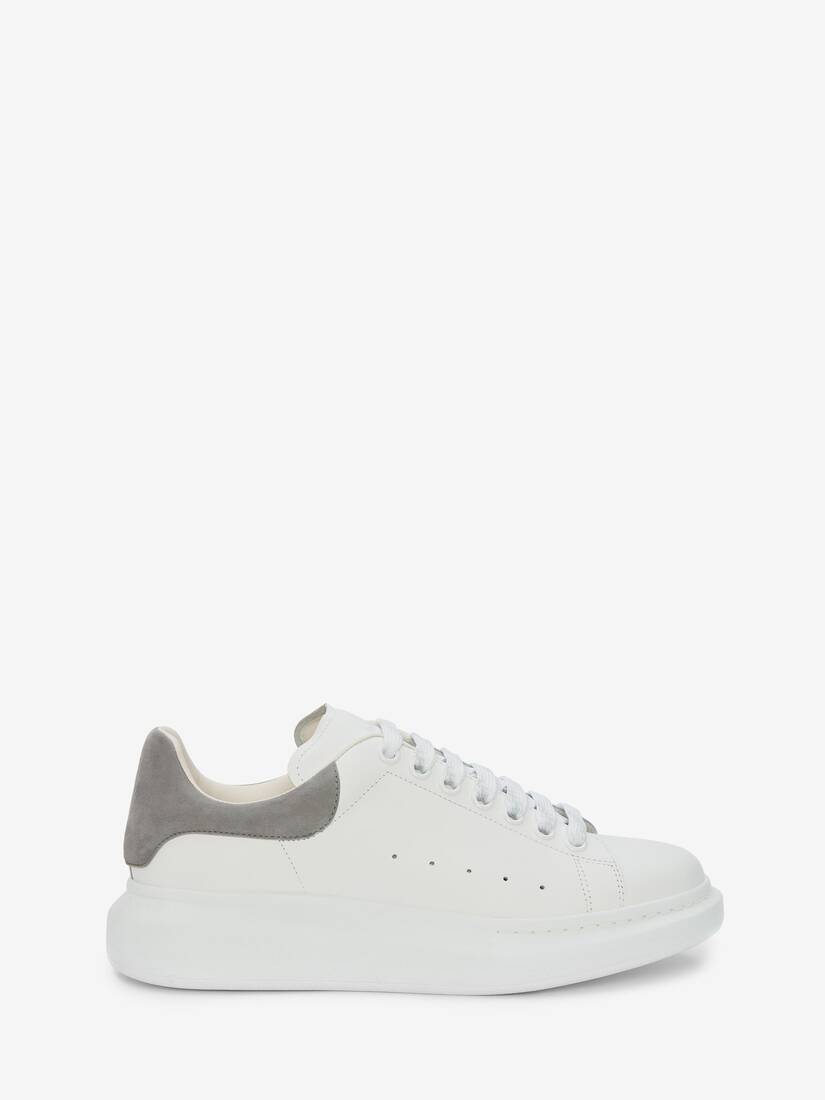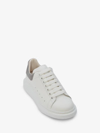 White smooth calf leather lace-up sneaker trimmed with a iron grey suede heel counter. The sneaker features large multicolour flat laces and an oversized rubber sole. Finished with an Alexander McQueen signature on tongue and heel counter. Oversized rubber sole with signature stamp design. The sneakers come with an additional lace set. To lessen our environmental impact and to reduce cotton consumption, we will no longer be providing a dust bag with our sneakers. Material: 100% Calf Leather