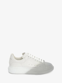 White smooth calfskin leather lace-up sneaker with grey melange spray flock dégradé. The sneaker features large flat laces and an oversized rubber sole. Finished with an Alexander McQueen signature on the tongue and heel counter. Oversized rubber sole with signature stamp design. The sneakers come with an additional set of shoelaces. Material: 100% Calf Leather