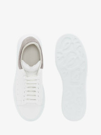 White smooth calfskin leather lace-up sneaker trimmed with a lead gray-stamped croco suede heel counter. The sneaker features large flat laces and an oversized rubber sole. Finished with an Alexander McQueen signature on the tongue and heel counter. Oversized rubber sole with signature stamp design. The sneakers come with an additional set of shoelaces. Material: 100% Calf Leather
