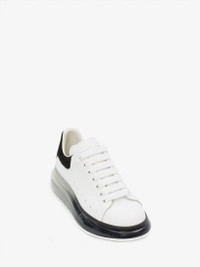 White smooth calfskin leather lace-up sneaker featuring a transparent dégradé oversized sole and black suede heel detail. The sneaker features large flat laces and is finished with an Alexander McQueen signature on tongue and heel counter. Oversized rubber sole with signature stamp design. The sneakers come with an additional set of shoelaces. To lessen our environmental impact and to reduce cotton consumption, we will no longer be providing a dust bag with our sneakers. Material:100% Calf Leather Product Code:604232WHX9V9061