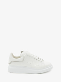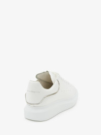 White smooth calf leather lace-up sneaker trimmed with silver-finished zip detailing on the heel counter. The sneaker features large White flat laces and an oversized rubber sole. Finished with an Alexander McQueen signature on tongue and heel counter. Oversized rubber sole with signature stamp design. The sneakers come with an additional lace set. To lessen our environmental impact and to reduce cotton consumption, we will no longer be providing a dust bag with our sneakers. Material: 100% Calf leather