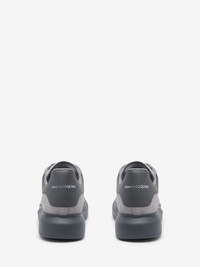 The Oversized Sneaker – statement silhouette in light grey suede with a dark grey heel counter. Finished with a chunky rubber sole. Product details - Round toe - McQueen signature - Contrasting heel counter - Oversized rubber sole - Additional pair of shoelaces included - Product code: 553680WWAAR1715 - Made in ITALY - Material: Calf Leather