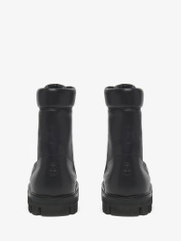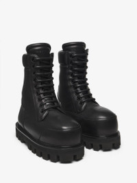 The Parachute boots - Oversized, statement silhouette in black leather. Industrial-inspired heavy duty lug sole, padded toe and tubular laces. Finished with inverted embossed signature skull motif. Product details - Puffy round toe - Padded ankle - Chunky lug sole • Tubular leather laces - Sole height: 45mm - Product code: 807872WHABC1000 - Made in Italy