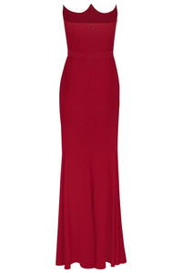 DETAILS AND INSIGHT Alexander McQueen peak corset gown in blood red. 52% Viscose, 48% Acetate, Lining: Acetate 74%, Silk 26% Dry Clean Imported Style 769236-QEAAA-6659
