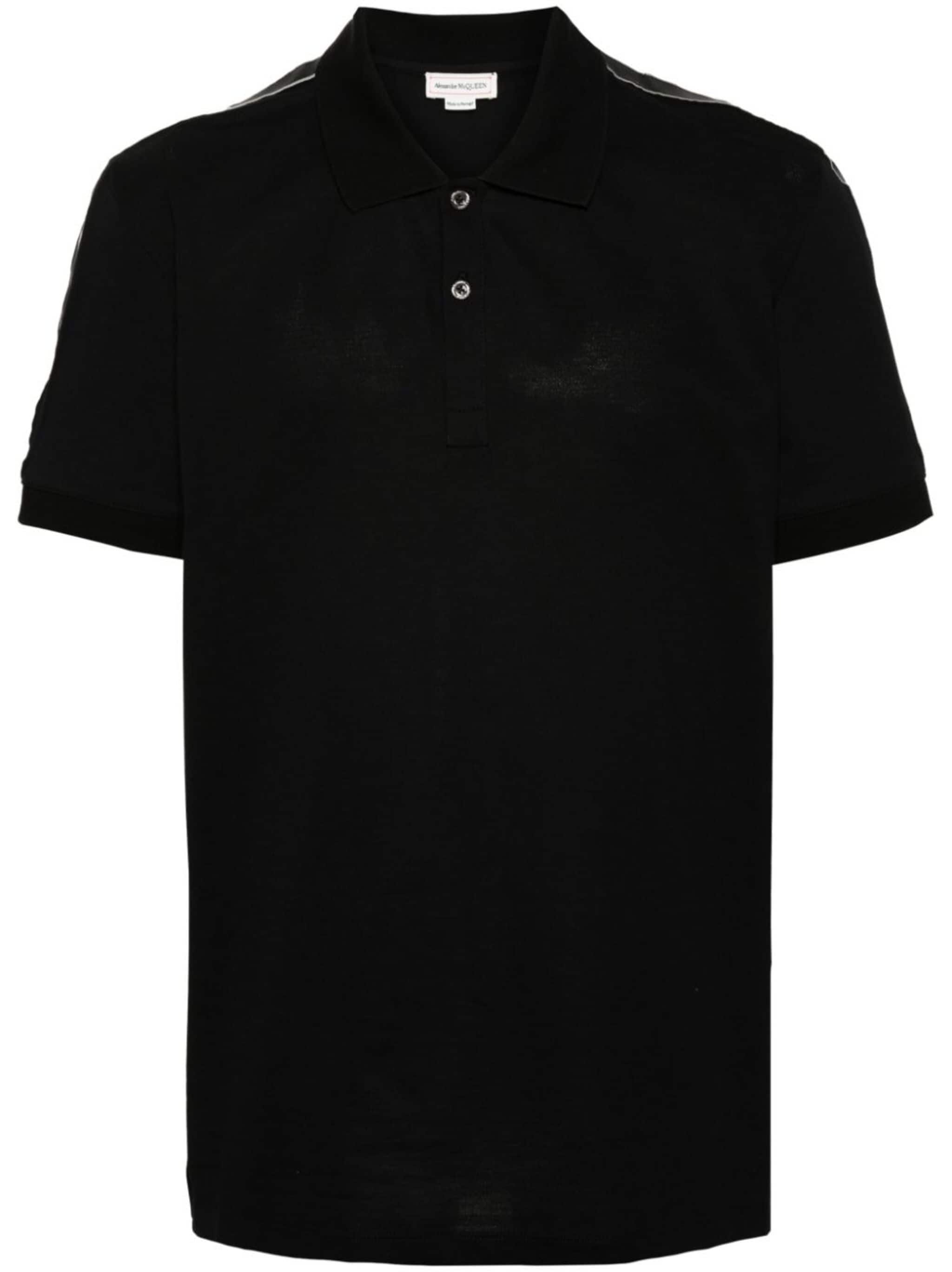 black cotton piqué weave logo-tape detailing polo collar front button placket short sleeves short side slits straight hem We've partnered with Good On You — an independent agency that rates how brands perform in relation to their impact on the planet, people and animals, with a multi-criteria rating simplified to a five points scale. In order to be awarded our conscious label, larger brands need to score a minimum of four out of five ('Good'), while smaller brands must score at least three out of five ('It's A Start'). This item comes from a brand rated three out of five ('It's A Start') by Good on You at the time it was added on FARFETCH. Please note, this is a brand-level rating and does not guarantee that this product is made with conscious materials. Learn more about what makes a product Conscious on our Conscious Criteria page Size & Fit Model Measurements: Height: 1.86 m Bust/Chest: 86.0 cm Hips: 96.0 cm Waist: 80.0 cm Model wears size L Fabric and Care Designer Style ID: 794696QXAAO Designer Colour: 0548 BLACK Composition: Cotton 100% Washing instructions: Machine Wash Made in Portugal