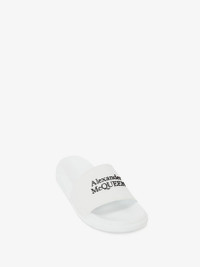 White rubber slide with a contrasting embedded Alexander McQueen signature on the strap. The slide has a textured oversized rubber sole. Finished with a round toe silhouette. Material:100% Rubber Product Code:663564W4RF09061