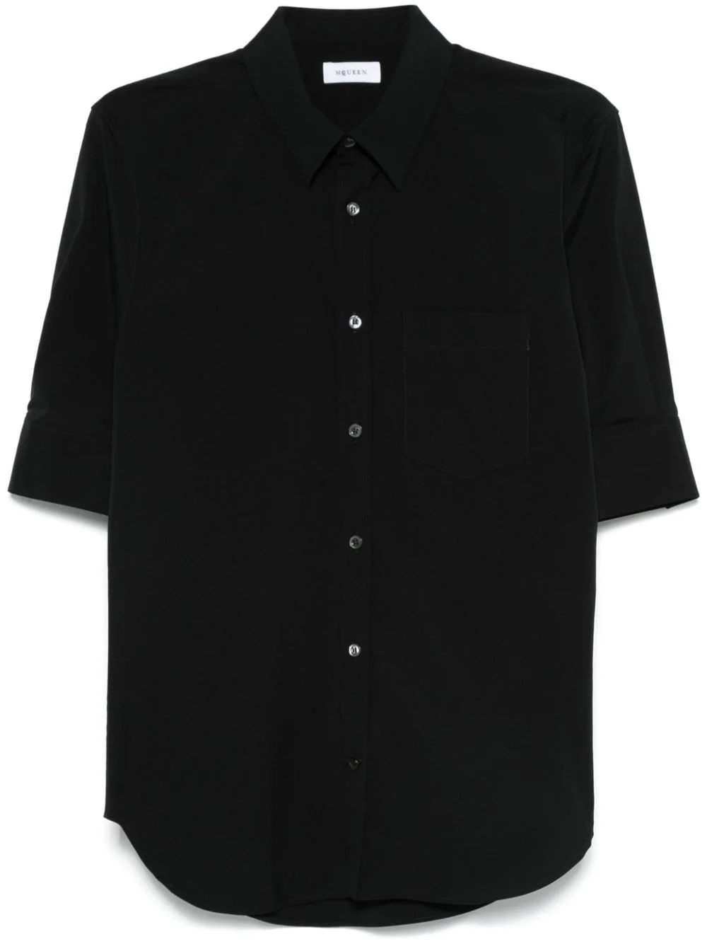 poplin shirt Highlights - Black - Front button fastening - Chest patch pocket - Buttoned cuffs - Short sleeves Imported Composition Cotton 97%, Elastane 3% SIZE & FIT Model measurements Height 6 ft 1 in(1.85 m) Bust/Chest 35.82 in(91 cm) Hips 37.79 in(96 cm) Waist 29.13 in(74 cm) FittingInformation Designed for a relaxed fit, this piece allows for comfort and movement when worn Made from a midweight stretch fabric, this piece offers elasticity and flexibility when worn
