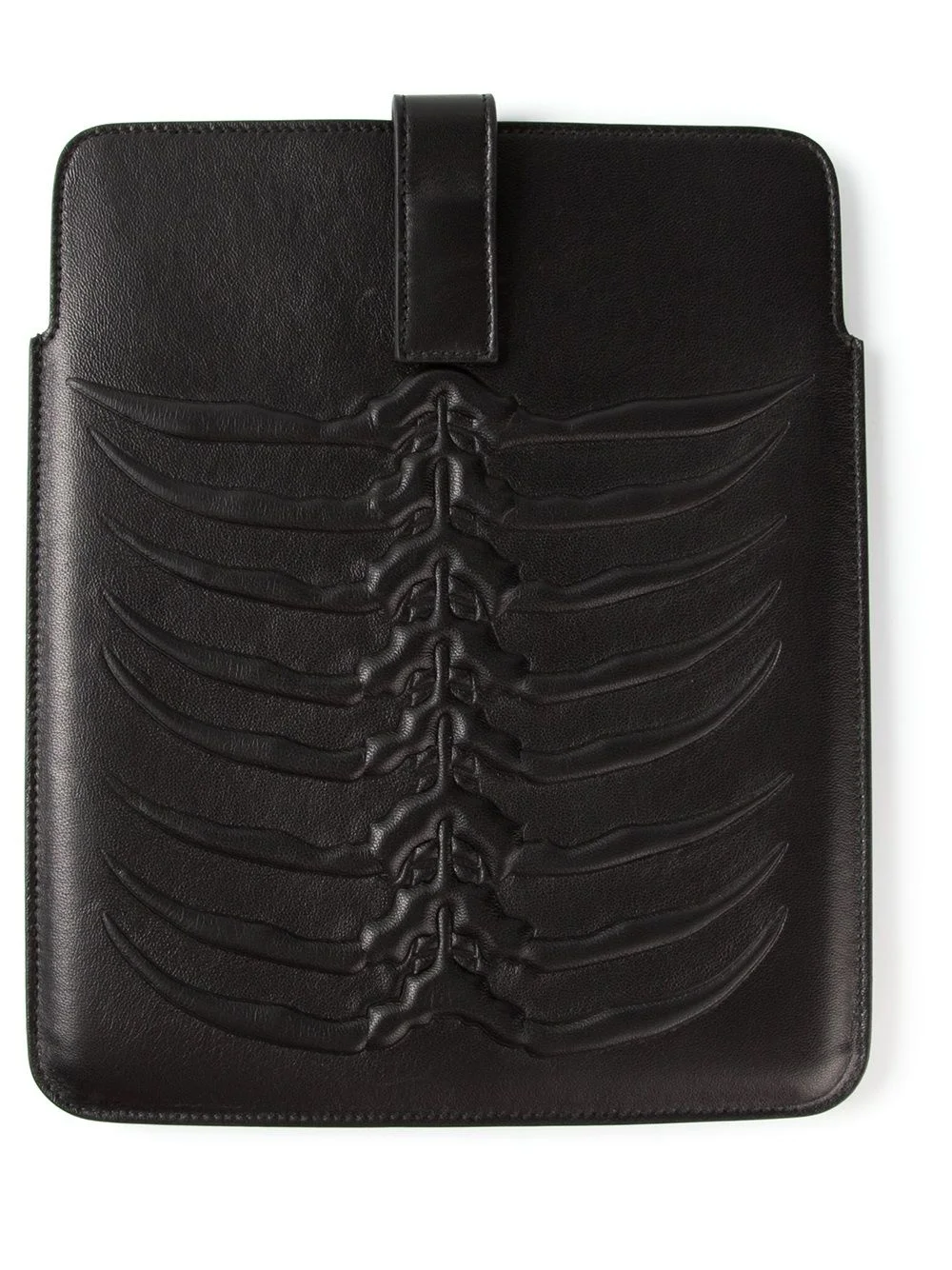 rib cage tablet case Black leather tablet case from Alexander McQueen featuring a raised rib cage effect to the back. Made in Italy Composition Outer: Leather 100% SIZE & FIT Measurement WIDTH 7.87 in(20 cm) HEIGHT 9.84 in(25 cm)
