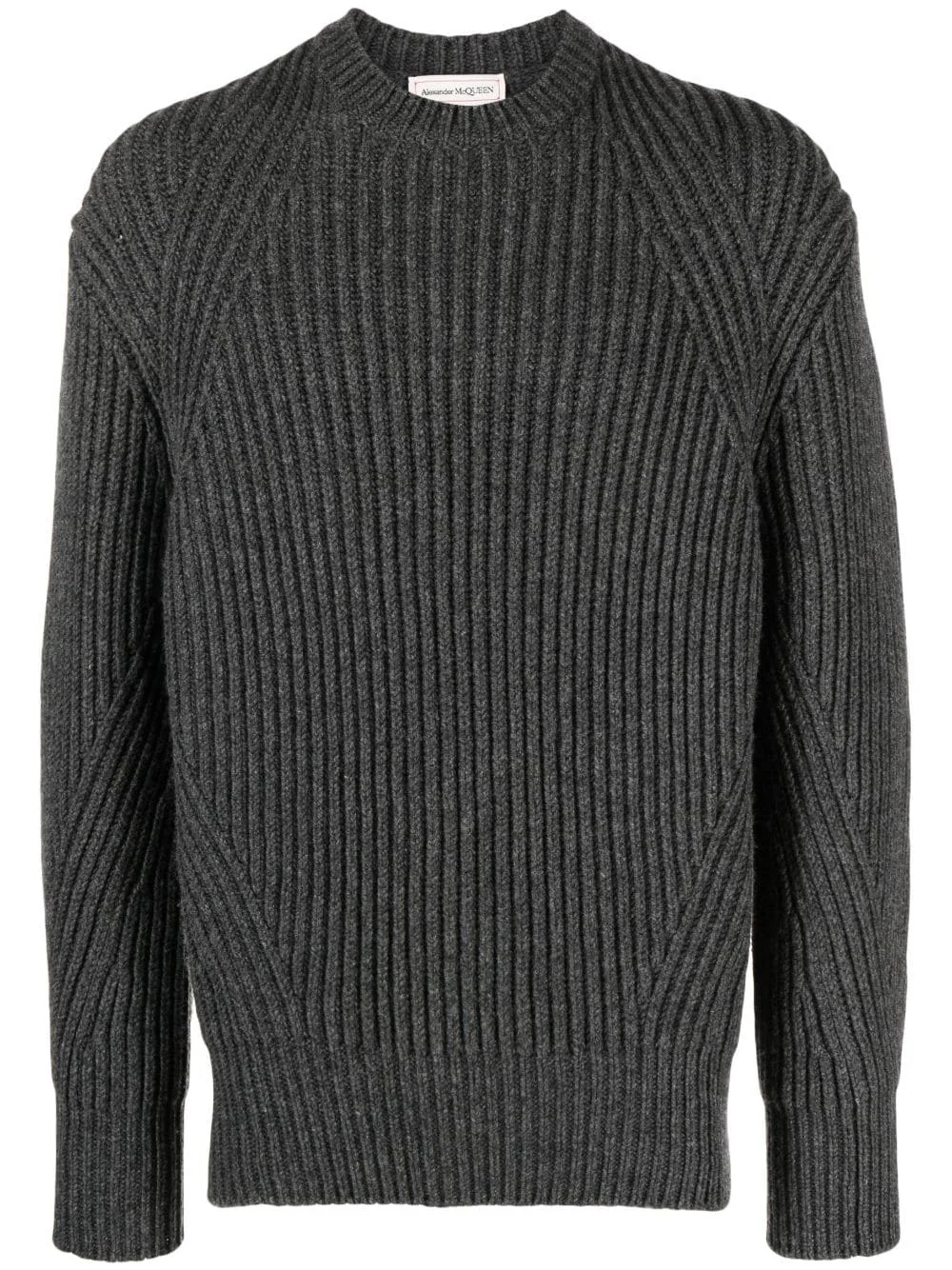 ribbed-knit wool jumper Alexander McQueen presents its take on knitwear with this crew-neck wool jumper. Spun with chunky, tactile ribbing, it promises intrigue with the changing direction of the stitch. Highlights - Charcoal grey - Wool - Chunky ribbed knit - Panelled design - Crew neck - Drop shoulder - Long sleeves - Ribbed trim - Straight hem Made in Italy Composition Wool 100% SIZE & FIT Model measurements Height 6 ft 2 in(1.87 m) Bust/Chest 38.18 in(97 cm) Hips 36.61 in(93 cm) Waist 29.13 in(74 cm) FittingInformation Designed for a relaxed fit, this piece allows for comfort and movement when worn Made with a midweight knit, this piece offers some stretch This piece fits true to size – take your usual size