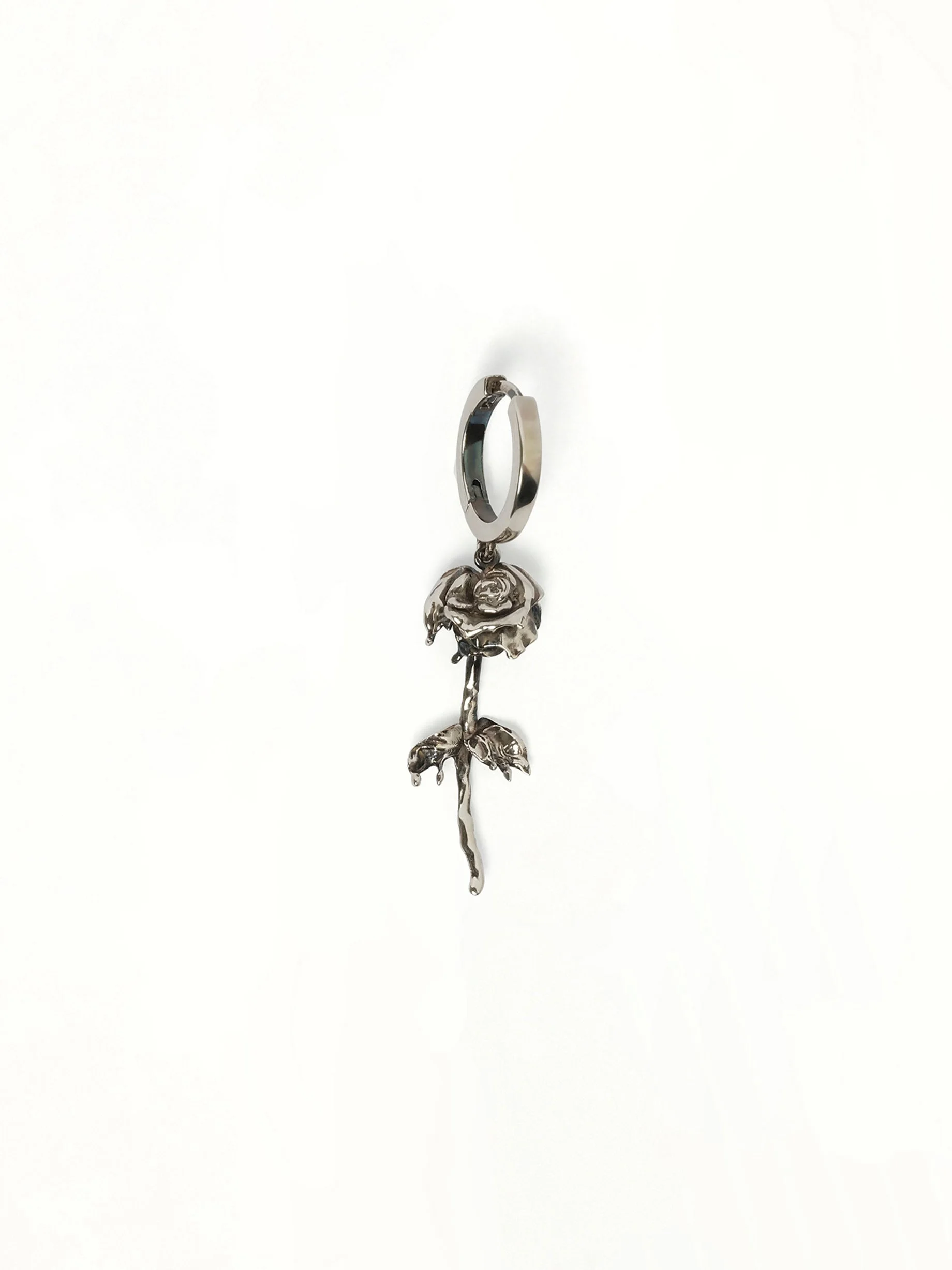 ALEXANDER MCQUEEN's Rose Hoop Earring in Antique Silver is a stunning blend of elegance and edge, perfect for making a bold statement. This exquisite piece captures the essence of timeless beauty with a modern twist. - Composition: Brass - Antique silver finish for a vintage-inspired look - Intricate rose detailing adds a touch of sophistication - Lightweight design for comfortable wear - Secure clasp closure ensures a perfect fit SKU: 823338J161N0446