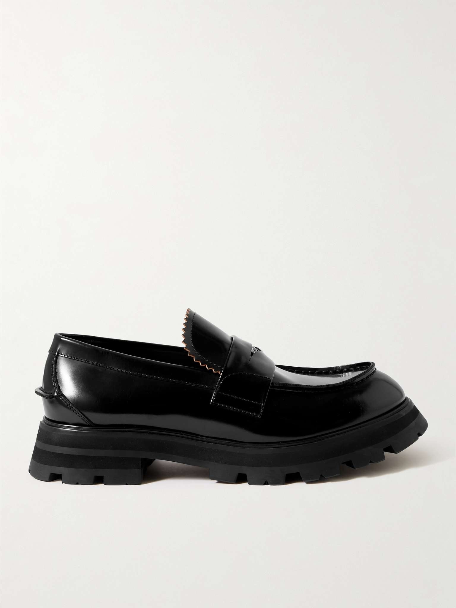 Alexander McQueen reworks a 1930s classic with these chunky penny loafers. They're made from polished leather with tonal stitching and have stacked heels for a little elevation. Wear yours with tailoring or slouchy denim. Size & Fit - Fits true to size. Take your normal size - European sizing - Shoe Length: 28.5cm / 11.2in - Heel Height: 7cm / 2.8in Details & Care - Black polished-leather (Calf) - This item has been imported