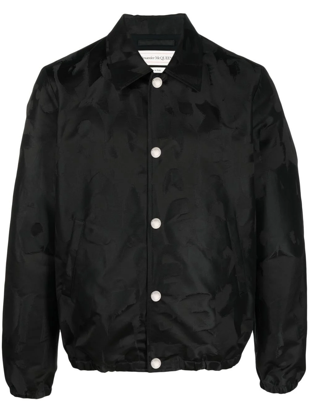 satin collared bomber jacket black cotton blend monogram pattern classic collar press-stud fastening long sleeves Made in Italy Composition Lining: Cotton 55%, Cupro 45% Outer: Polyester 100% SIZE & FIT Model measurements Height 6 ft 2 in(1.87 m) Bust/Chest 35.03 in(89 cm) Hips 34.64 in(88 cm) Waist 25.98 in(66 cm) FittingInformation This piece fits true to size. We recommend you get your regular size Cut for a loose fit Made with a mid-weight non-stretch fabric Washing instructions Dry Clean Only