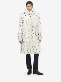 Knee-length coat in ivory shearling with black accents. Stand collar and side pockets. Finished with a concealed front fastening with lambskin detailing. Product details - Standing collar - Side pockets - Concealed front fastening - Product code: 847067Q5AQD9009 - Made in ITALY - Material: 100% Lamb Fur