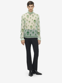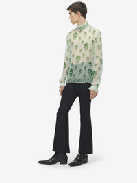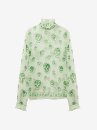 Long-sleeved top in silk chiffon with an engineered carnation green Skull print. Ruffle detailing at the collar and cuffs. Finished with a back button fastening. Product details - Standing collar - Long sleeves - Back button fastening - Product code: 849930QQABF3075 - Made in ITALY - Material: 100% Silk
