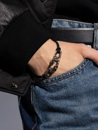 Logo bracelet [ SKU: 11302860275 ] black brass snake motif skull applique clasp fastening silver-tone hardware Composition 100% BRASS Reference 7949681ALDA1011 Made in Italy Size and Fit PENDANT LENGTH: 1.4 Centimetres PENDANT WIDTH: 5.3 Centimetres TOTAL LENGTH: 20.0 Centimetres WIDTH: 0.3 Centimetres