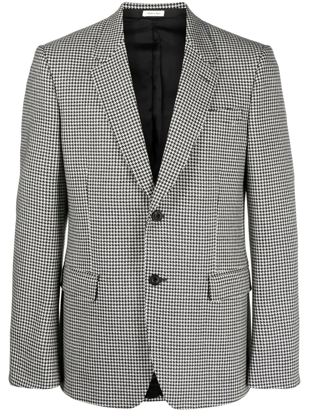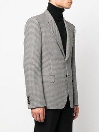 single-breasted houndstooth blazer black/white cotton-wool blend houndstooth pattern front button fastening peak lapels chest welt pocket two front flap pockets Made in Italy Composition Outer: Wool 100% Lining: Cotton 100% SIZE & FIT Model measurements Height 6 ft 1 in(1.85 m) Bust/Chest 35.82 in(91 cm) Hips 37.79 in(96 cm) Waist 29.13 in(74 cm) FittingInformation This piece fits true to size. We recommend you get your regular size Cut for a slim fit Made with a mid-weight non-stretch fabric Washing instructions Dry Clean Only