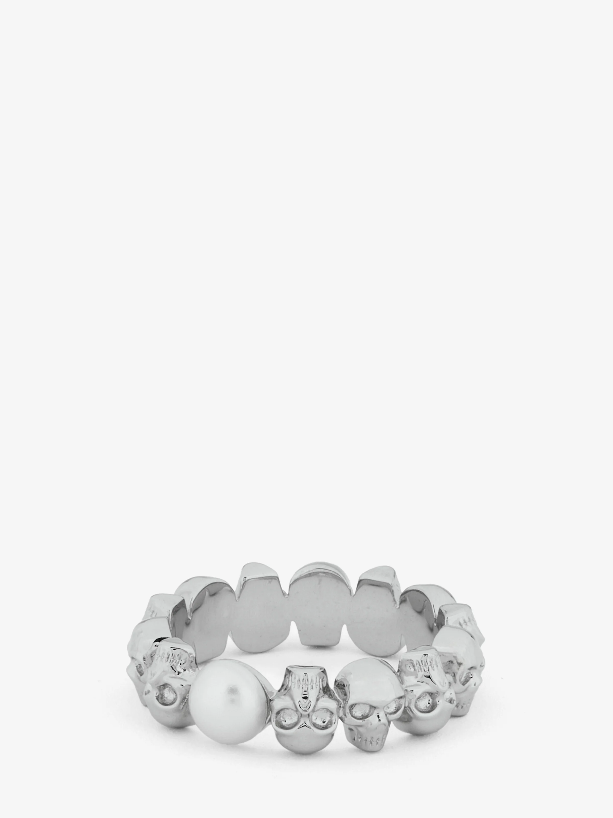 Palladium-finished ring featuring skull and imitation pearl detailing. Eco-brass hardware. Product details - Height: 0.65 cm / 0.2 inches - Eco-brass hardware - Palladium finish - Available in four sizes - Product code: 836794J16PB1906 - Made in Italy - Material: Brass