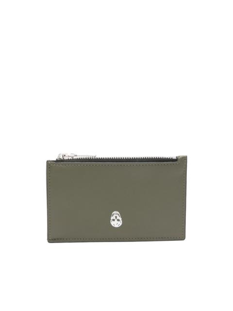 Skull-detail zip card holder