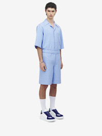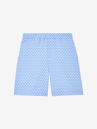 Knee-length shorts in Jermyn Street blue viscose Skull jacquard. Elasticated waistband, side pockets and back welt pockets. Complete the look with the matching shirt. Product details - Elasticated waistband - Side pockets - Back welt pockets - Contains certified viscose yarn - Product code: 838666QRABU4343 - Made in Italy - Material: 78% Viscose, 22% Polyester