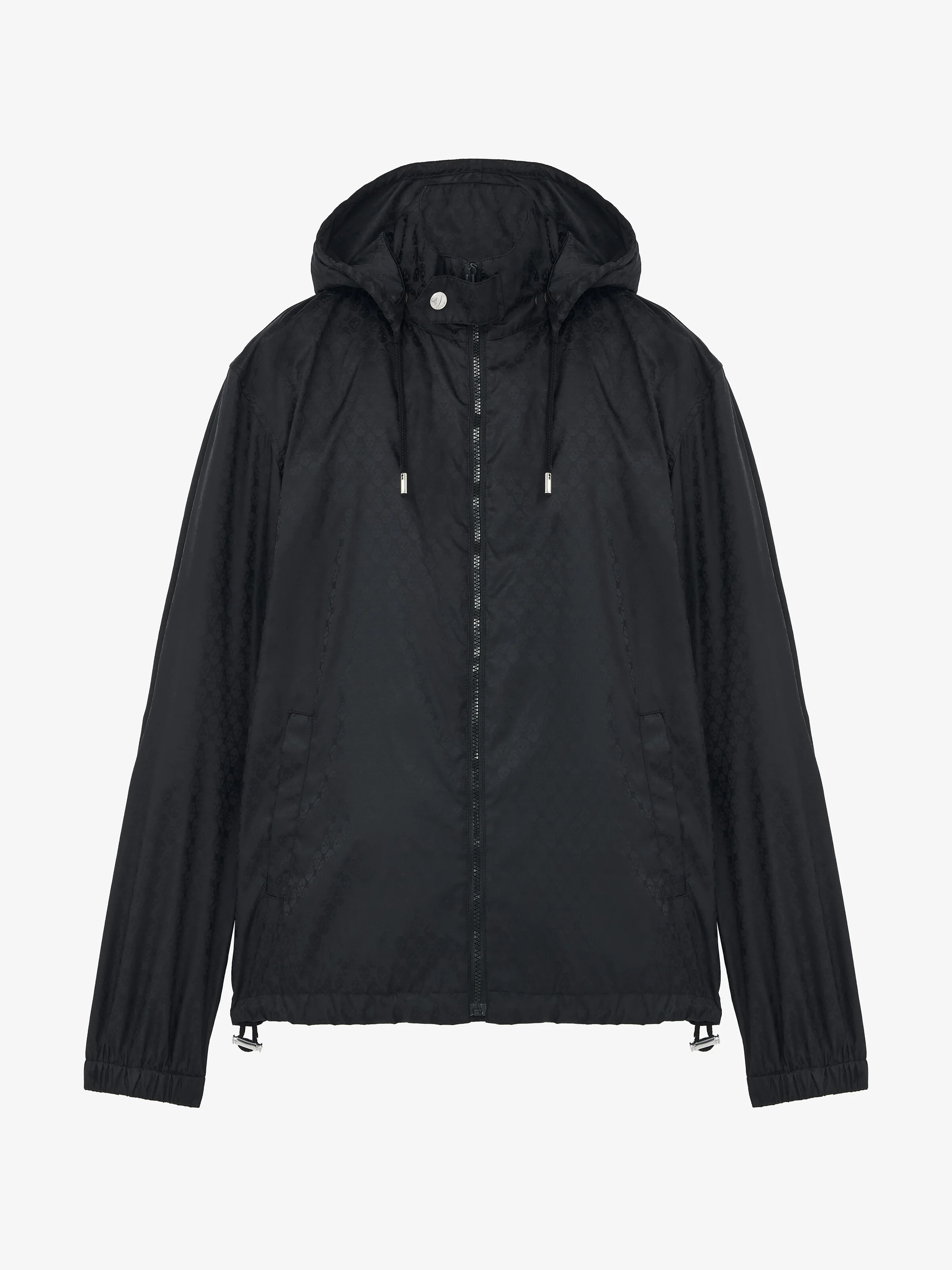Windbreaker in black nylon skull jacquard. Drawstring hood, side pockets and front zip fastening. Product details - Side pockets - Front zip fastening - Product code: 838592QRACA1000 - Made in Italy - Material: Polyamid