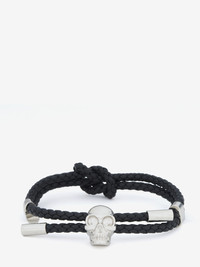Braided black leather cord bracelet detailed with metal skull and tips. Adjustable length. Eco-brass hardware. Product details - Eco-brass hardware with palladium finish - Adjustable length - Product code: 8366881ALCA1000 - Made in ITALY - Material: 80% Calf Leather, 20% Brass