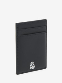 The Skull Magnetic Card Holder—crafted from smooth black calf leather designed to attach magnetically to the back of the phone. Featuring two card slots. Finished with a high-frequency skull print on the front. Product details - Dimensions: Length 6.5 x Height 9.5 x Depth 0.1 cm / 2.5 x 3.7 x 0.03 inches - Magnetic back - Two card slots - Skull print - Product code: 8361401AAVB1064 - Made in Italy - Material: Calf Leather